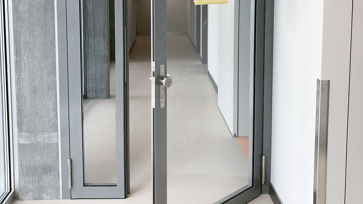Neben einer Menge manuell bedienbarer Türen produzierte und lieferte Hammer auch verschiedene automatisierte Schiebetüren mit und ohne Swing-Out-Funktion im Profilsystem Forster Fuego light, EI30. Bei der Wahl der automatischen Antriebe entschieden sich die Verantwortlichen für Produkte der Firma Record Türautomation.