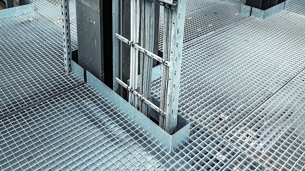 Bei den Gitterrosten fiel der Entscheid auf den Pressrost mit einer Maschenweite von 33 x 33 mm. Trotz des geringen Eigengewichts weist der Pressrost eine hohe Tragfähigkeit auf, die beim ZAB von Bedeutung war. Die Tragfähigkeit ergibt sich aus dem optimalen Zusammenspiel von Trag - und Querstäben sowie mit seiner Einfassung. Die Randeinfassung hält den ganzen Gitterrost wie ein Bilderrahmen zusammen.
