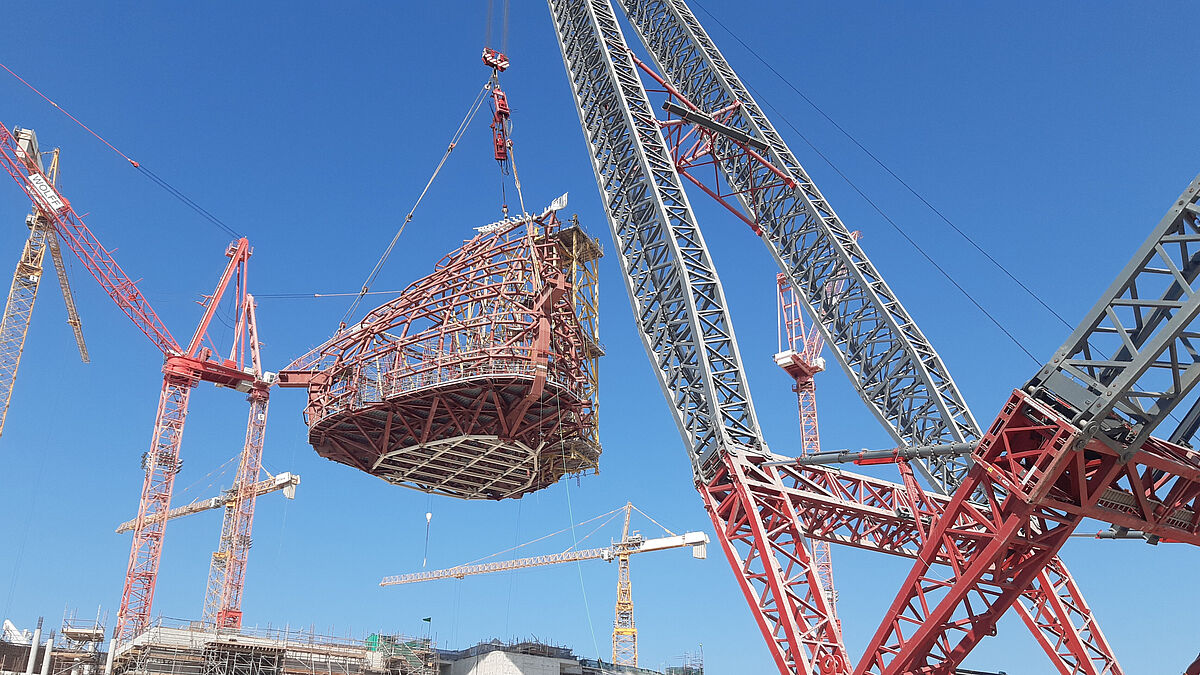 Mit dem Einsatz eines SK-Krans realisierte Mammoet eine effiziente und sichere modulare Montage auf einer aktiven Baustelle im Kulturviertel von Saadiyat Island in Abu Dhabi. Das Projekt zeigt, wie angepasste Hebekonzepte komplexe Architektur unter beengten Bedingungen ermöglichen.