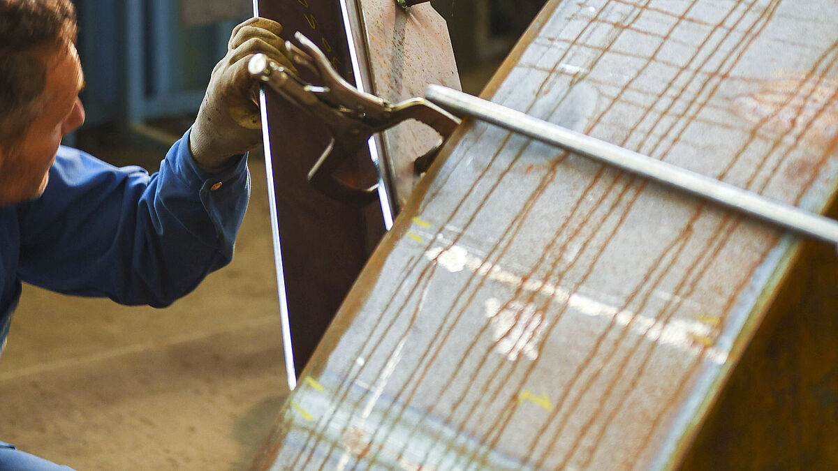 Angesichts der erheblichen Stärken der für die Föia verwendeten Bleche fiel die Wahl auf Cortenstahl Typ B. Dieser Werkstoff wird auch als «Vanadium-Stahl» bezeichnet. Dank seiner chemischen Zusammensetzung bewahrt er auch mit grossen Stärken ausgezeichnete mechanische Eigenschaften.