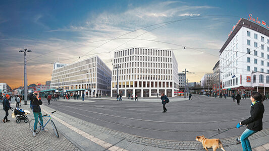 Das Grundstück liegt im Zentrum der Stadt Bremen zwischen der Altstadt und den Wallanlagen im Süden und dem Messe- und Veranstaltungszentrum im Norden. Es bildet einen Teil der innerstädtischen Entwicklungsachse für Einzelhandel, Tourismus und Dienstleistungsbereich und wird durch die hervorragende Erschliessung über sämtliche ÖPNV-, Nah-, Regional- und Fernverbindungen sowie Strassenverkehrsachsen von mehr als 100 000 Passanten auf dem Weg zwischen Bahnhof und Innenstadt täglich frequentiert. So kommt seiner Bebauung als Visitenkarte Bremens immense Bedeutung zu. Durch ihre gestalterischen Verfeinerungen erfahren die beiden Bauteile eine Differenzierung, aus der sich die unterschiedlichen Funktionen ablesen lassen. Hotel und Bürohaus unterscheiden sich subtil in den variierenden Fassaden. Die in beiden Fällen zahlreichen Rücksprünge erhöhen den dynamischen Ausdruck und geben dem Baukörper zusätzlich seine identitätsstiftende figürliche Qualität.
