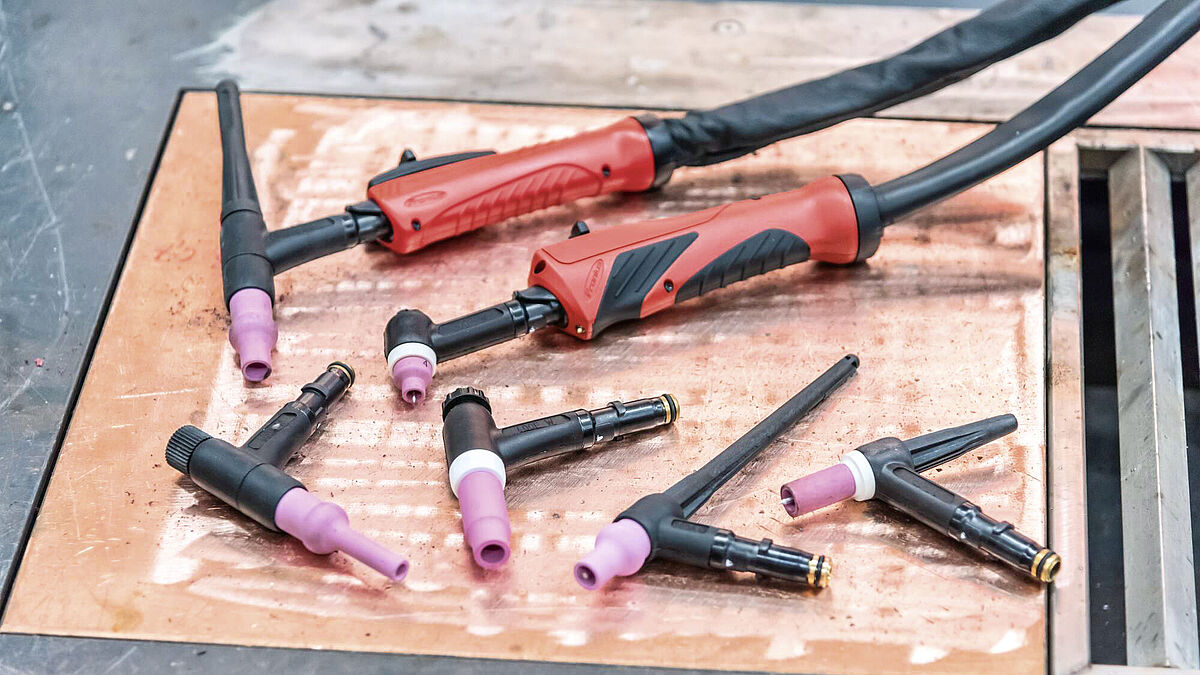 Für das WIG-Schweissen stehen mehr als 40 verschiedene Brennerkörper zur Auswahl, im Bereich MIG/MAG sind es über 80. Darunter finden sich auch flexible Brennerkörper, die sich individuell in Form biegen lassen. Für den Wechsel wird zudem keinerlei Werkzeug benötigt.