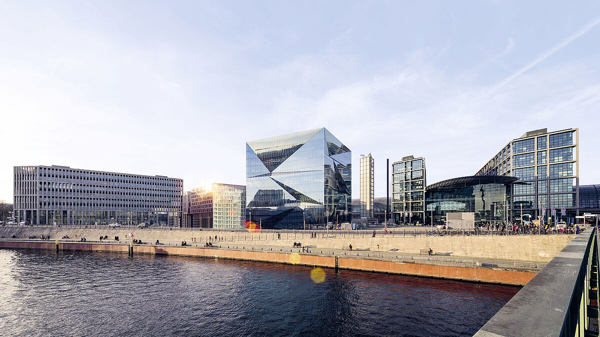 Cube Berlin wurde vom Büroimmobilienspezialisten CA Immo als Smart Commercial Building nach einem Entwurf von 3XN Architekten aus Kopenhagen errichtet. Der 42,5 m hohe Würfel beherbergt auf zehn Geschossebenen rund 17 500 Quadratmeter Büroflächen, die flexibel ausbaufähig sind und damit offen sind für alle Formen innovativen Bürolayouts. Aktivitätsbasiertes Arbeiten, dynamisches Büro, organisationsübergreifende Kommunikation, Mehrmieterbelegung: Das Cube Berlin bietet für alle modernen Arbeitsplatztrends die notwendige digitalisierte Umgebung wie Inhouse Navigation, das Tracking von Personen und Gegenständen oder Zugangskontrolle durch Personenerkennung.
