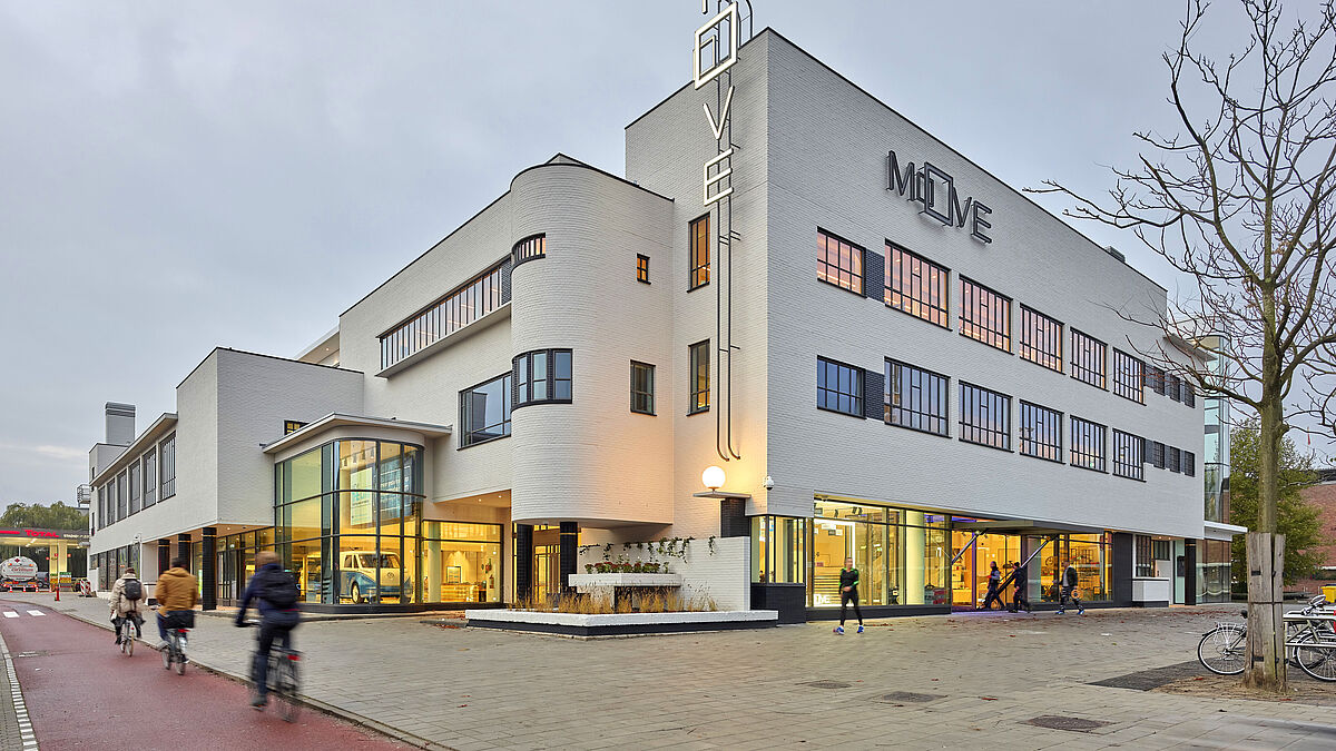 Die einladende Geste führt direkt ins «Mobility Experience Center» von Pon. Das Unternehmen ist in den Niederlanden als Importeur von Volkswagen, Seat, Audi und Skoda bekannt. Weniger bekannt ist, dass Pon auch Fahrräder herstellt und Carsharing-Lösungen entwickelt. Weil sich abstrakte Inhalte wie alternative Verkehrsmittel nur schwer vermitteln lassen, hat Pon das «Mobility Experience Center» mit wechselnden Ausstellungen zum Thema zukunftsweisende Mobilität initiiert. MOVE, wie das Gebäude seit der Transformation heisst, bietet mit einer Mischung von Gewerbe, Gastronomie und Veranstaltungen genau das richtige Umfeld, um Mobilitätslösungen von morgen zu präsentieren – und das in einem Gebäude, das immer schon der Mobilität gewidmet war. ■