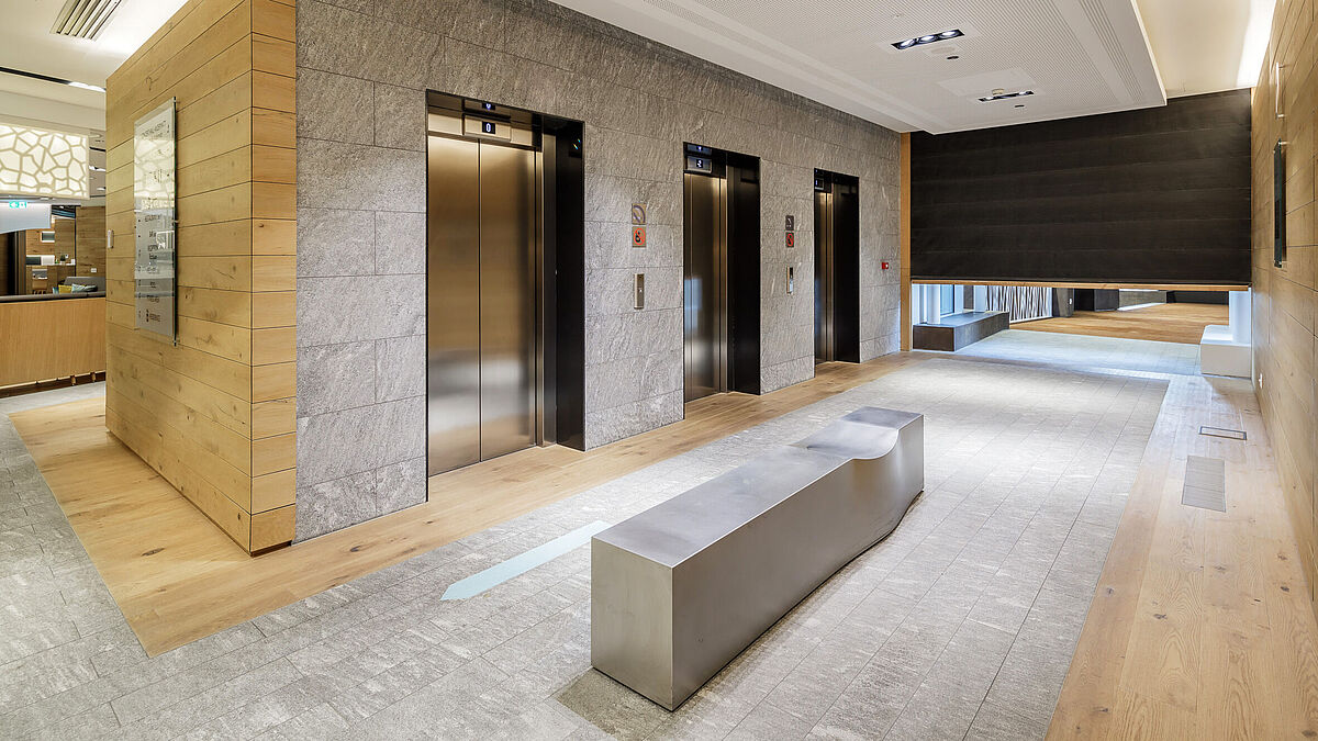 Ergänzt wurden die Brandabschlüsse mit einem Schiebtor im Spa- und Fitness-Bereich und insgesamt 21 Alu-Glas- beziehungsweise 125 Stahltüren. Letztere Produkte, die Alu-Glas- und Stahltüren, kamen dabei in verschiedensten Ausführungen zum Einsatz. Darunter 1-flügelige beziehungsweise 2-flügelige Elemente mit und ohne Oberlichter, unter anderem im grössten Parkhaus des Kantons mit über 500 Parkplätzen und eigenem Car-Rental-Office. ■