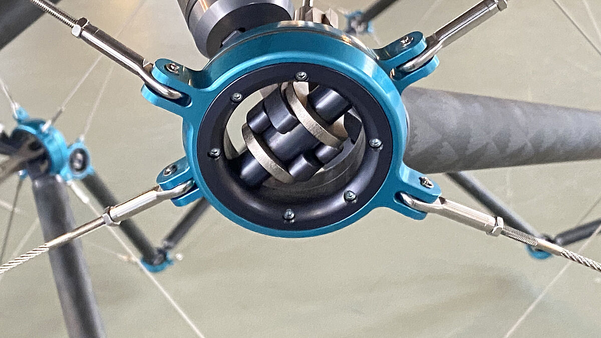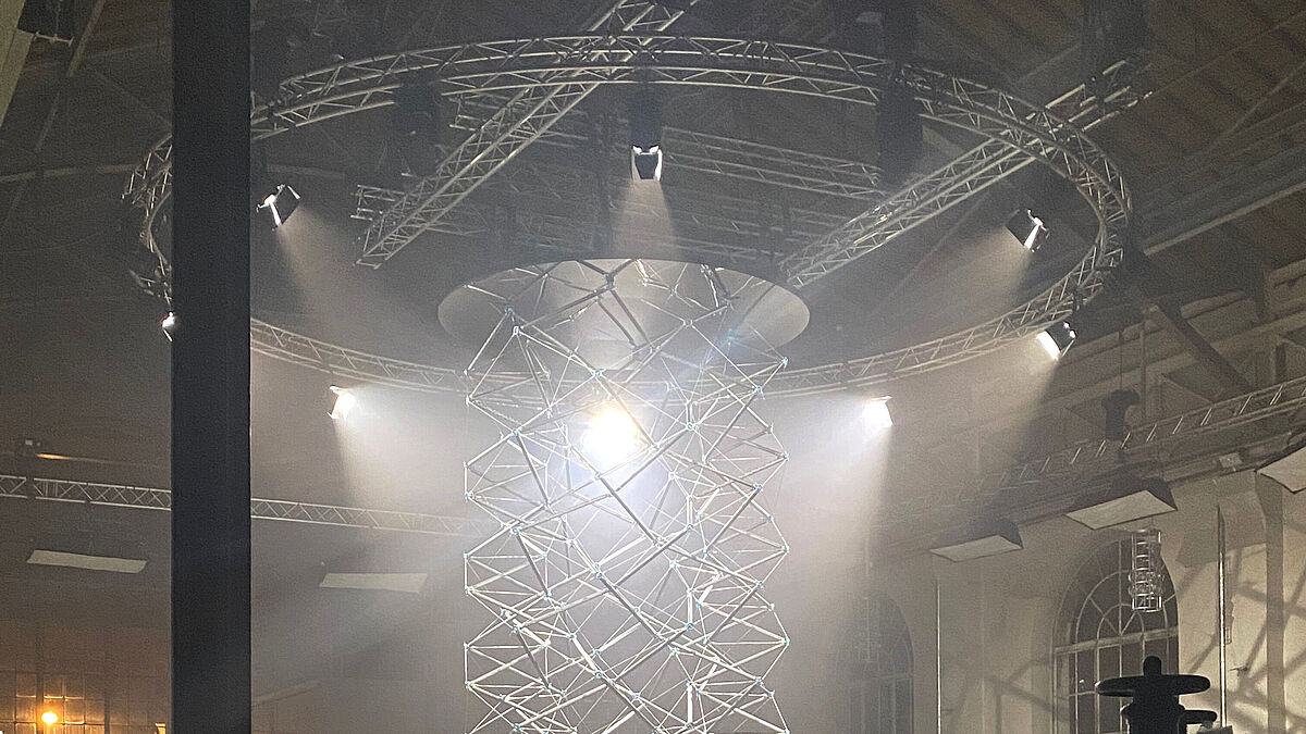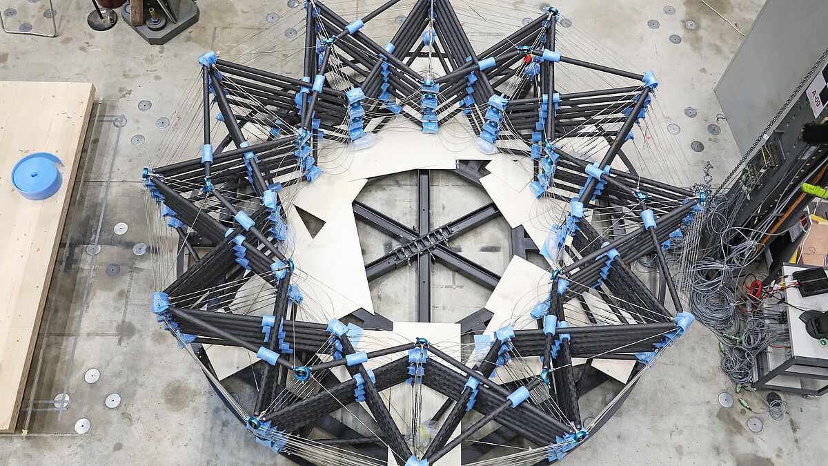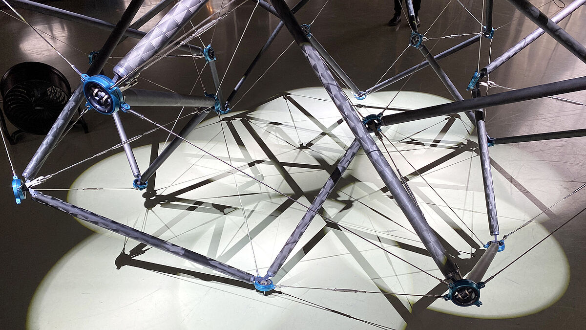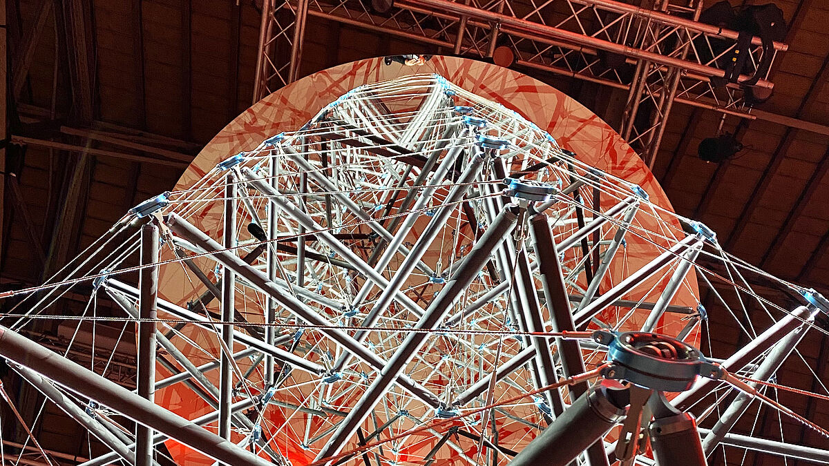 Die Struktur besteht aus 180 Verbindungselementen, 180 Karbonstäben, 84 radialen Seilen, 348 spiralförmigen Seilen aus Edelstahl.
