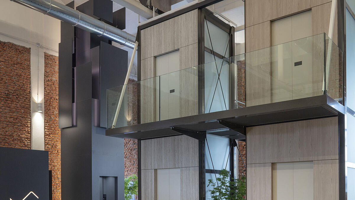Die technische Komplexität des Projekts erforderte eine enge Abstimmung aller Beteiligten. Bereits in der Planungsphase wurde ein 1:1-Muster gefertigt, das gemeinsam mit den Architekten geprüft und angepasst wurde. So konnten konstruktive Lösungen frühzeitig optimiert werden. Die Zusammenarbeit mit Schindler als Liftbauer sicherte zusätzlich ab, dass alle Schnittstellen – von der Rohbauöffnung bis zum Türflügel – nahtlos ineinandergreifen.