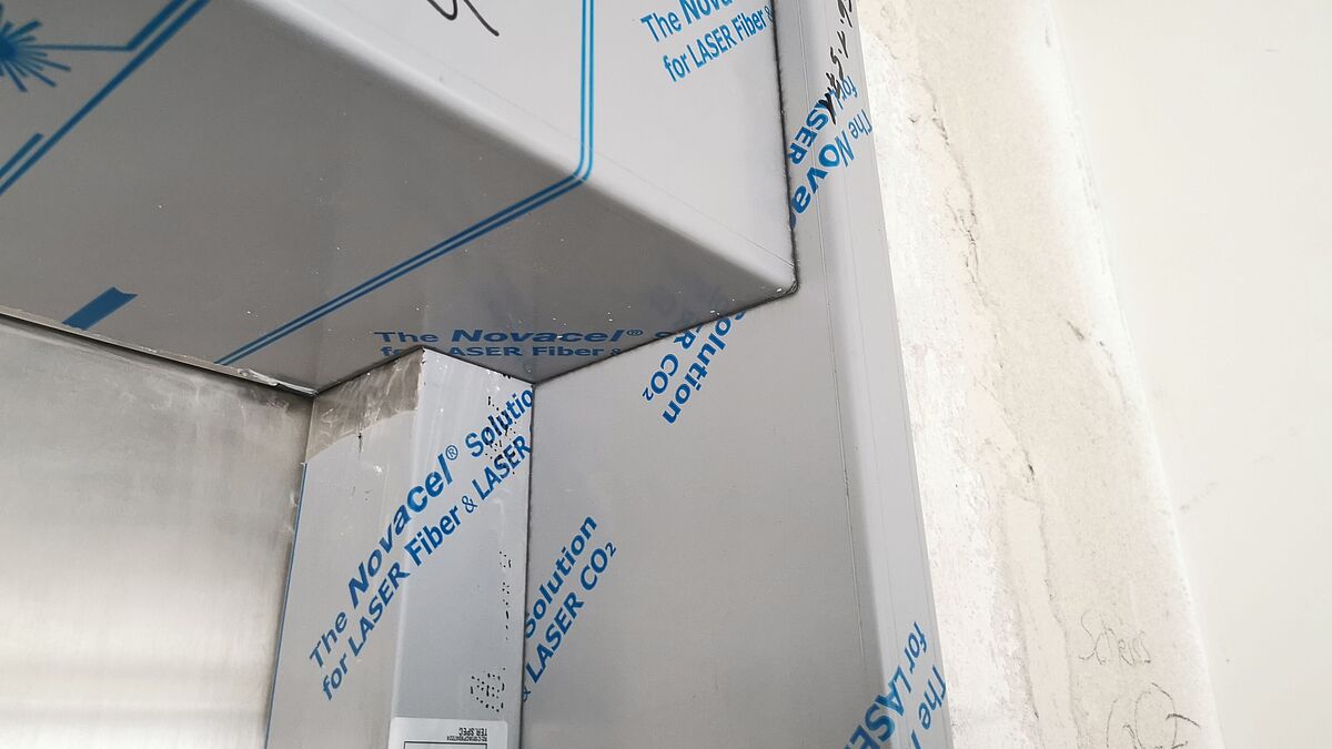 Im Bereich des Waren- und Gastrolifts wurde zusätzlich ein Rammschutz integriert: Das Grundsystem wurde mit 1,5 mm starkem, geschliffenem CNS-Blech verkleidet – widerstandsfähig, funktional, aber optisch trotzdem im Einklang mit den übrigen Anlagen. Auch farblich wurden Akzente gesetzt: Vertikale Zargen unterscheiden sich bewusst in ihrer Tönung von anderen Blechelementen und unterstreichen so die feine Gliederung der Liftanlagen.