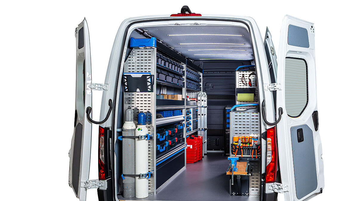 Liefer- und Montagefahrzeuge bis 3,5 Tonnen bieten heute vielfältige Möglichkeiten für individuelle Innenausbauten. Ziel ist es, das Fahrzeug optimal an die branchenspezifischen Anforderungen anzupassen. Der Mehrwert entsteht durch ein durchdachtes Gesamtkonzept. Professionelle Anbieter unterstützen bei Planung und Umsetzung. Die meisten Systeme sind modular, weitgehend markenunabhängig und nachrüstbar. Bewährte Elemente sind Seitenwände, Regalsysteme für Kleinteile, verriegelte Werkzeugschubladen, Halterungen für Maschinen sowie Arbeitsflächen oder Schraubstöcke für Anpassungsarbeiten vor Ort. Bei Kastenwagenformen bewährt sich häufig ein doppelter Boden. Da die volle Innenraumhöhe selten genutzt wird, schafft er zusätzlichen Stauraum für Leitern, Profile oder Kabel und sorgt gleichzeitig für Übersicht und Ordnung im Arbeitsbereich.