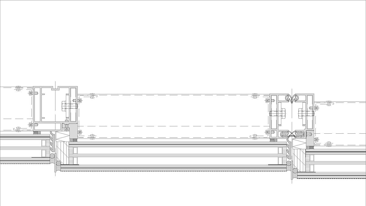 Zur Steigerung der Montageeffizienz wurden die Fassadenelemente in Einheiten mit je fünf Pfosten und vier Glaselementen gefertigt. Diese Pfosteneinheiten sind horizontal über Riegel und Verbindungsstücke verbunden. Die vertikalen Pfostenprofile wurden von Aepli Metallbau aus Aluminium, die horizontalen Riegel aus Stahl gefertigt – zur Erfüllung statischer und schallschutztechnischer Anforderungen.