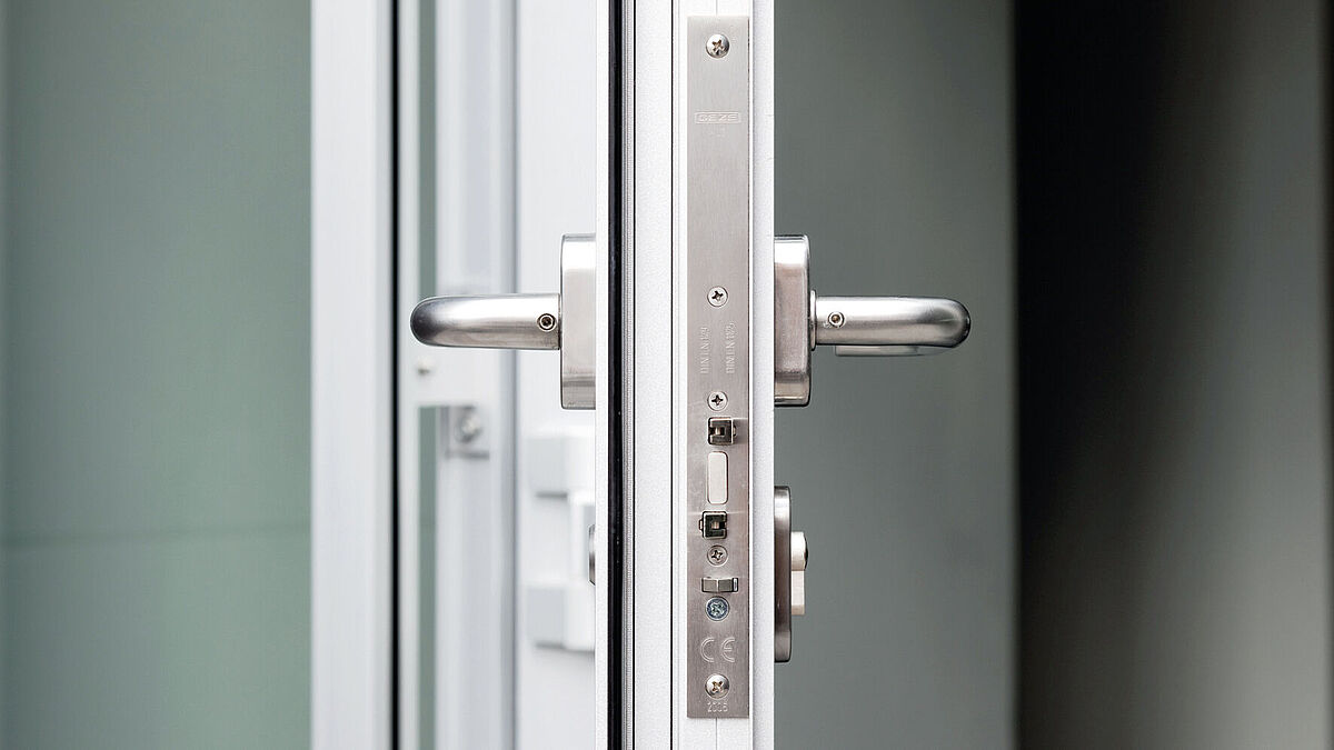 Hier haben rein mechanische Systeme genauso ihre Berechtigung wie elektronisch gesteuerte Komponenten. Wenn sich die Eingangsbereiche nicht oder nur bedingt mit elektrischen Zuleitungen bestücken lassen, bewährte sich in den vergangenen Jahren ein mechanisches, selbstverriegelndes Fluchttürschloss mit elektrischem Türöffner.