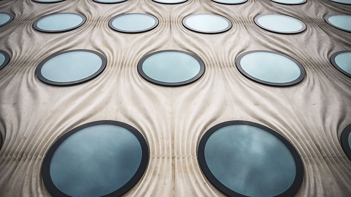 An der Nord- und Südfassade des 170 m langen, 110 m breiten und 33 m hohen Gebäudes sind exakt 315 Rundfenster – mit einem Durchmesser von 2,0 m – eingebaut. Für die Entwicklung, Herstellung und Montage war die Surber Metallbau AG, Dietikon, verantwortlich.