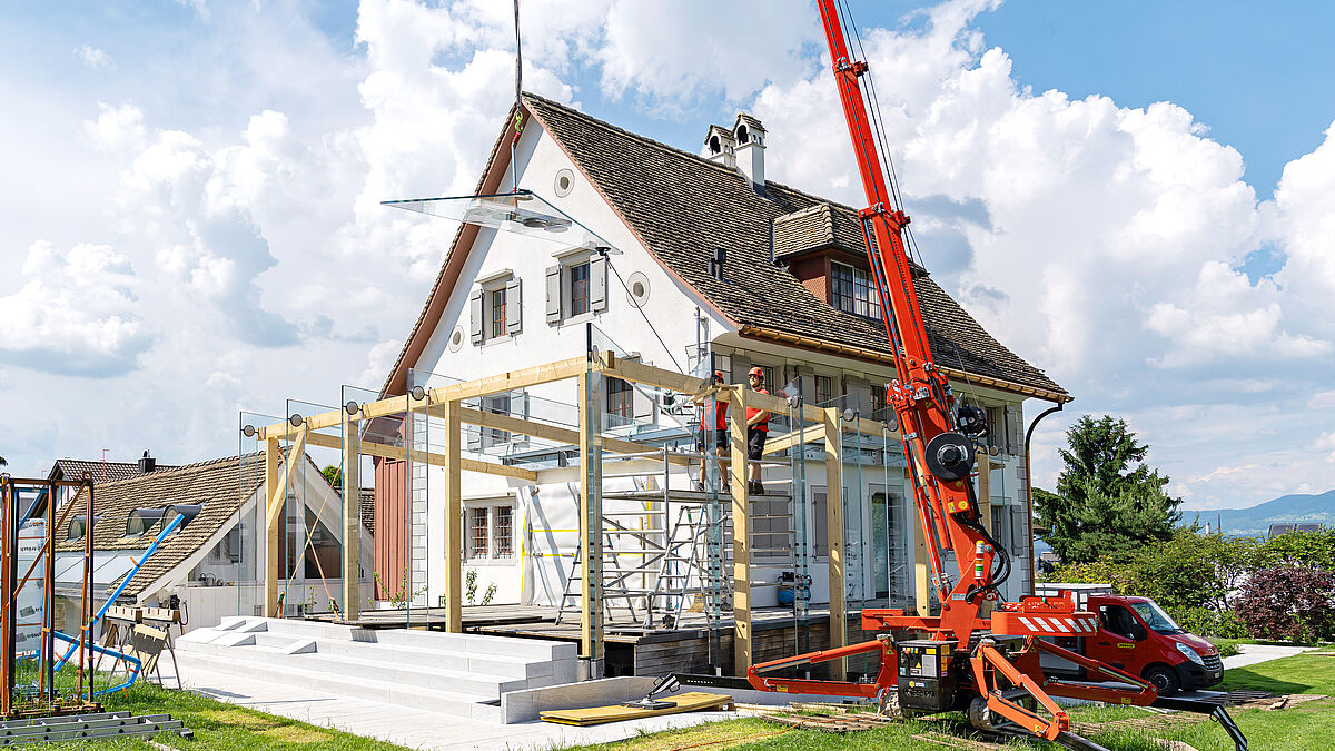 Neben einem leichten, edlen Erscheinungsbild spielten für die Bauherrschaft funktionale Überlegungen eine grosse Rolle. So wurde bewusst auf einen frontseitig durchlaufenden Dachträger verzichtet und die Dachgläser gegen aussen leicht ansteigend gerichtet. «Diese beiden Massnahmen gewährleisten, dass die unter dem Glasdach aufgewärmte Luft ungehindert abziehen kann und sich kein Wärmestau bildet», erklärt Mario Russi, Inhaber und Geschäftsführer der Cladding AG. Russi war für die technische Entwicklung, die Statik und – zusammen mit dem Bauherrn – auch für die optischen Aspekte zuständig.