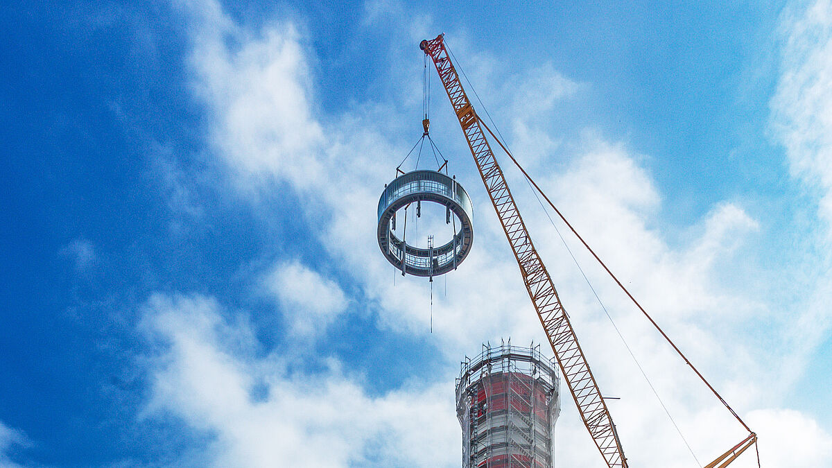 Rund 90 Meter über dem Boden thront die hellblau und metallisch schimmernde Krone auf dem neu gestrichenen Kamin der erneuerten Energiezentrale Josefstrasse in Zürich. In optischer Hinsicht dominiert an diesem zylinderförmigen Kaminkranz der Aussenmantel aus Profilbauglas. Neben der ausgeklügelten Konstruktion beeindruckt insbesondere die Montage des 14 Tonnen schweren und im Durchmesser die 10-Meter-Marke sprengenden Zylinders.