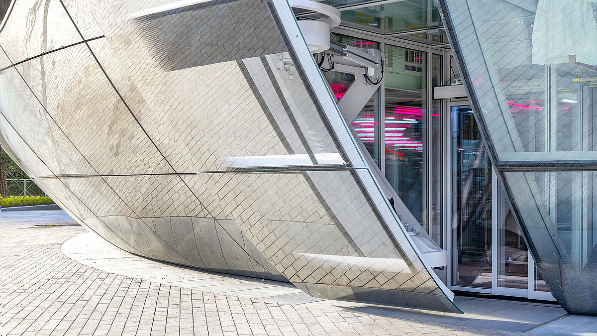 Das Schaudepot Boijmans von Beuningen ist ein Gebäude, das seiner Umgebung den Spiegel vorhält – so nimmt es sich selbst weitestgehend zurück. Zur Montage der zweifach, teils dreifach gewölbten Spiegelpaneele entschieden MVRDV Architekten sich für die Systemlösung Jansen VISS SG Fassade mit der Anforderung der Einbruchhemmung in der Klasse RC4. Sämtliche verglasten Innenfassaden wurden in RC3 in der Brandschutzanforderung EI60 realisiert und mit wärmegedämmten Brandschutztüren ausgestattet. Die nahtlos integrierten automatischen Schwingtüren der Eingangsbereiche sind ebenfalls Sonderlösungen auf der Basis eines Stahlprofilsystems von Jansen.
