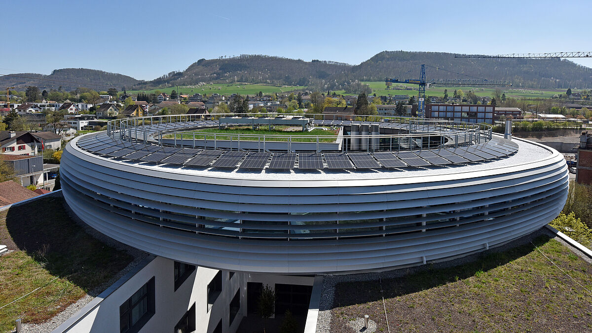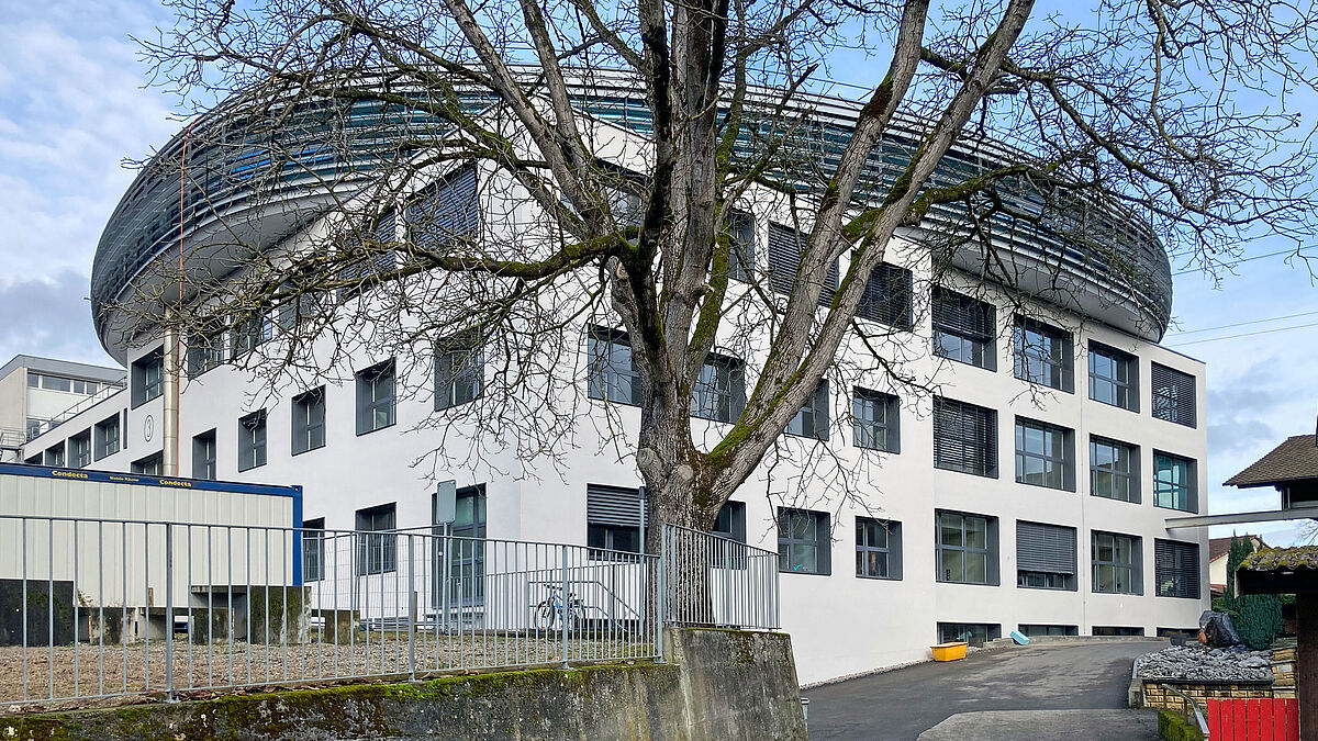 Ein Büro, das über den Dächern zu schweben scheint: Mit dem Erweiterungsbau «Loop», einem sehr leicht wirkenden, runden Baukörper aus Glas und Metall, hat sich das Architekturbüro Bäumlin+John AG in Frick selbst ein bemerkenswertes Denkmal gesetzt – ein Ausdruck von Gestaltungskraft, Zukunftsdenken und Arbeitskultur.
