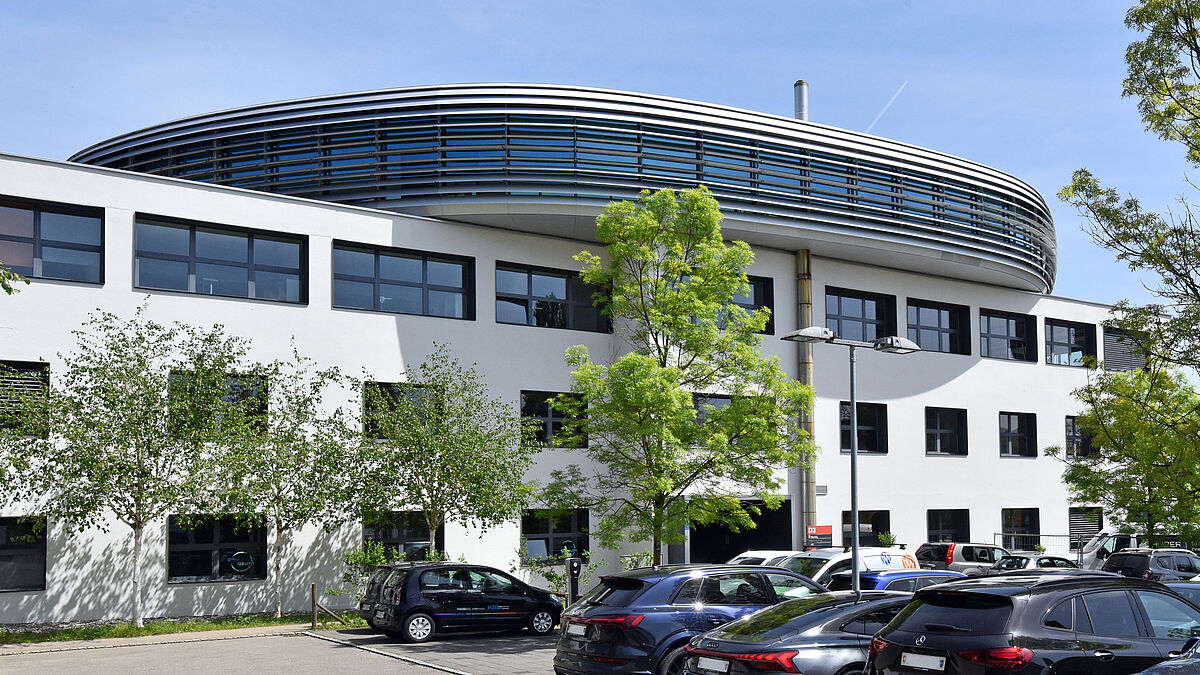Der «Loop» – ein runder, schwebender Baukörper ohne Ecken und Kanten – liegt wie ein leichter Ring auf dem bestehenden Gewerbebau an der Dammstrasse 3 im aargauischen Frick. Designer und Nutzer zugleich ist das renommierte Architekturbüro Bäumlin+John AG. Mit seiner geschwungenen, dynamischen Form hebt sich der Aufbau deutlich vom Bestand ab und wirkt dennoch harmonisch gebettet. Die Aussenfassade besteht aus einer rundum, aber nicht im Radius verlaufenden Verglasung mit aussenseitiger, fix montierter Brise Soleil-Konstruktion. Die 14 übereinander angeordneten Aluminiumlamellen sorgen für blendfreies Tageslicht und erlauben gleichzeitig weite Ausblicke. Zudem prägen die Lamellen das Erscheinungsbild des Gebäudes entscheidend mit – modern, eigenständig, markant. Die innere Glasfassade des Kreisrings folgt einem gleichmässigen Radius und schafft die visuelle Verbindung zum begrünten Innenhof.
