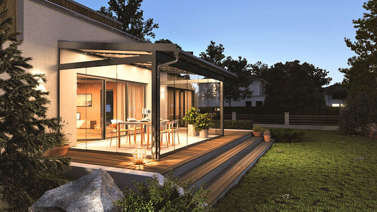 Transparente Verglasungen gewähren den freien Blick in die Umgebung und ermöglichen es, auch in den kühleren Abendstunden sowie bei Wind und Regen den Garten zu geniessen. Wer solche Verglasungen verkauft oder verbaut, sollte Bescheid wissen.