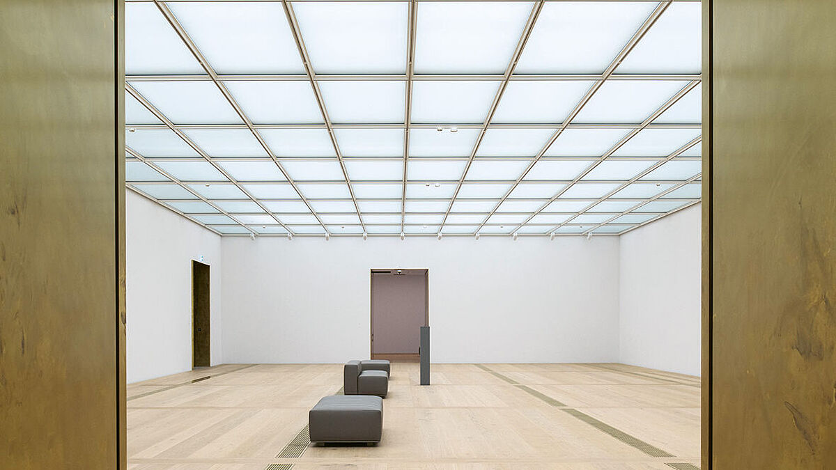 Chipperfield Architects Berlin schufen mit dem Erweiterungsbau des Kunsthauses Zürich am Heimplatz einen Kubus mit 5000 m 2 Fläche für Ausstellungen und Aktionen. Die reduzierte Materialität im Innern stellt Raumerlebnis und Kunstgenuss in den Vordergrund. Oberlichter und deckenhohe Fensterflächen sorgen für angenehme Tageslichtzufuhr, gleichzeitig werden hohe Anforderungen an Wärme- und Schallschutz sowie Einbruchsicherheit erfüllt.