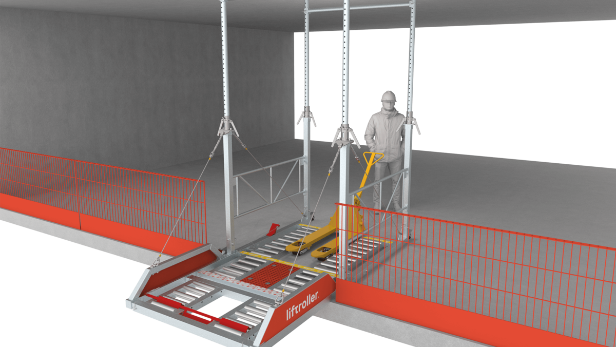 Der Liftroller ist die wohl effizienteste Lösung für eine Baustellen-Logistik ohne Baugerüst. Die Ware wird mit einem Kran an den richtigen Ort gehoben und dort auf einen am Gebäude angebrachten Liftroller gelegt. Durch die Rollenbahnen am Liftroller-System kann man die Ware schnell und sicher in das Innere des Gebäudes rollen. Von dort können selbst schwere Pakete entweder ganz einfach mit einem handelsüblichen Hubwagen oder mit dem Liftroller EL Wagon weitertransportiert werden. Den Liftroller gibt es in der Ausführung «Wall» oder «Floor». Beide Produkte werden im Gebäude ohne zusätzliche Haltevorrichtungen wie Ankerbohrungen oder dergleichen verspannt. Bei einem korrekten Gebrauch sind nach abschliessen der Arbeiten also keine Spuren sichtbar am Gebäude.