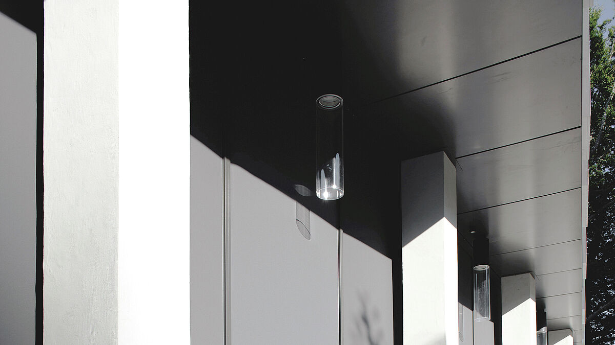 Um diese Vorgaben der Architekten zu erfüllen, wurde die kompakte Anlage als nach unten revisionierbare Vorbaulösung in den Schacht eingeschoben. Die Führungsschienen sind kaum sichtbar auf dem Laibungsrahmen aus Stahl befestigt. Die windstabile Sonderlösung kann als mehrteilige Anlage sogar die über 100 m 2 grosse Glasfassade des Gartensaals komplett und ohne seitlichen Lichtspalt verschliessen.