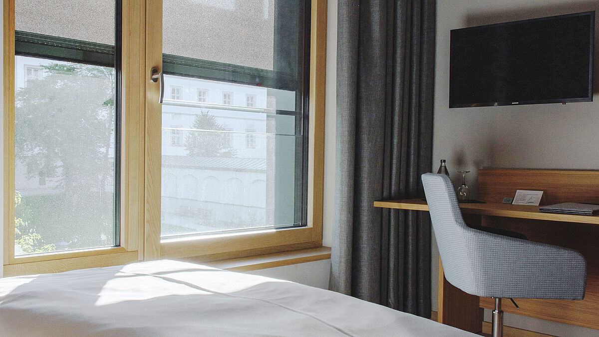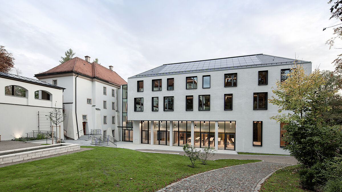 Die barocke Klosteranlage Irsee im Allgäu (D) beherbergt heute das Schwäbische Bildungszentrum Irsee. Der Sonnenschutz für den modernen Erweiterungsneubau wurde mit unsichtbar verbauten Warema Fenster-System- und Vorbau-Markisen sowie einem multifunktionalen Behang realisiert.