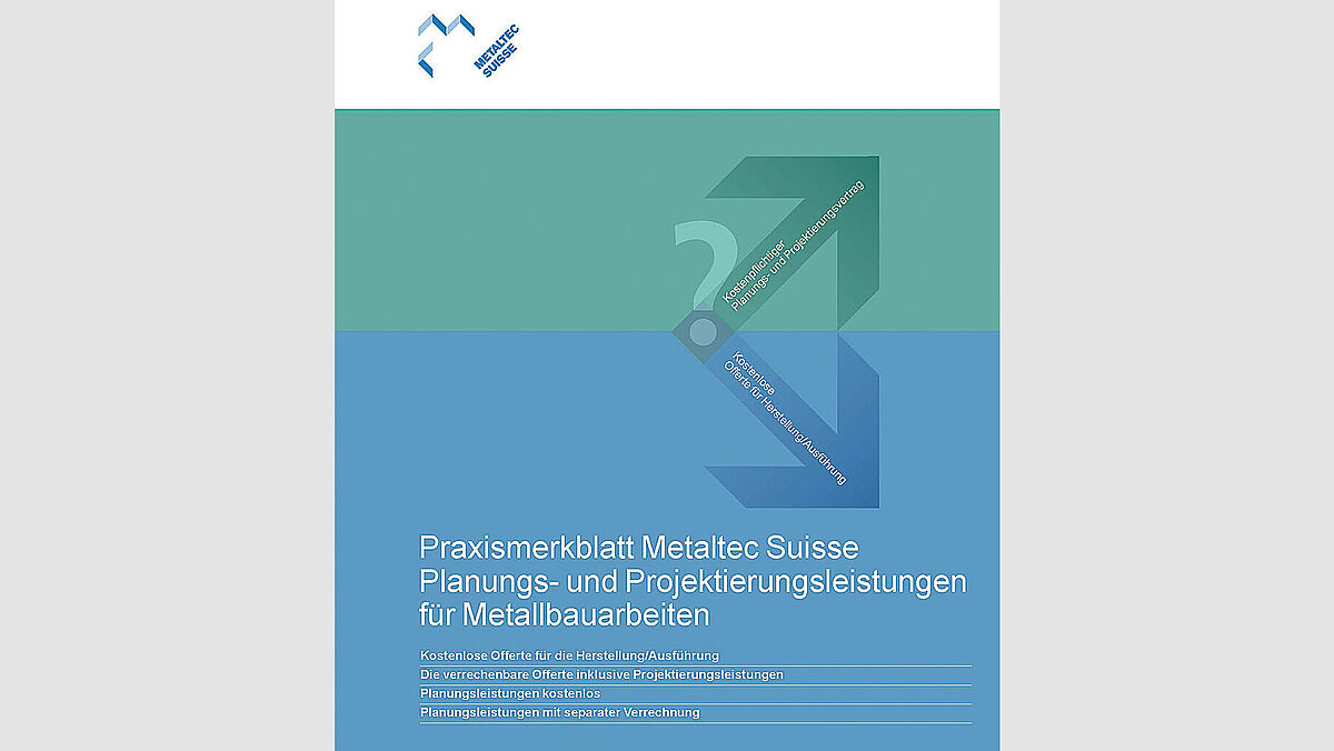 Metaltec Suisse hat mit dem neuen Praxismerkblatt «Planungs- und Projektierungsleistungen für Metallbauarbeiten» eine wichtige Wegleitung geschaffen, die regelt, unter welchen Umständen Planungs- und Projektierungsleistungen für Metallbauarbeiten in Rechnung gestellt werden dürfen.