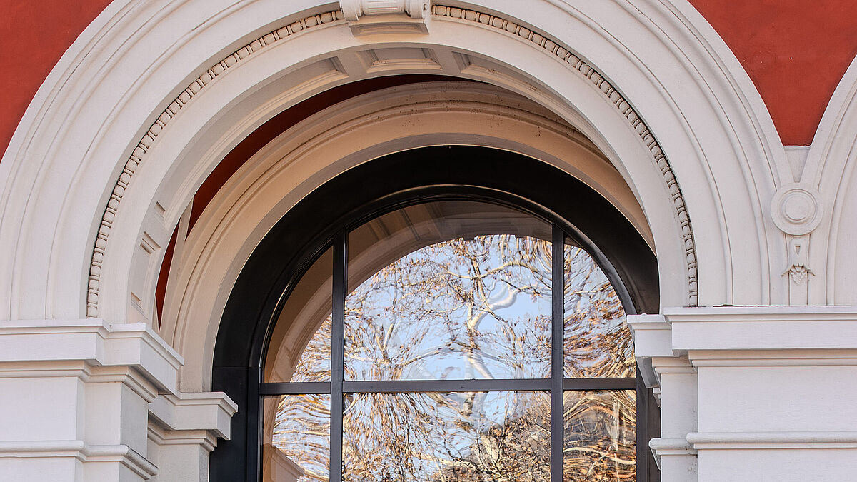 Die Officine Cameroni SA wurde mit dem Austausch der Metallfenster beauftragt – ein Eingriff, der ein perfektes Gleichgewicht zwischen technischer Innovation und der Einhaltung bestimmter stilistischer Kriterien erforderte. Die Auswahl der Materialien und Oberflächen, die nicht zuletzt der Erfahrung des Lieferanten Jansen AG mit dieser Art von Elementen (klassische Rundbogenfenster) zu verdanken ist, war entscheidend für die perfekte Integration der neuen Fenster in die bestehende Struktur, ohne deren Ästhetik zu beeinträchtigen.