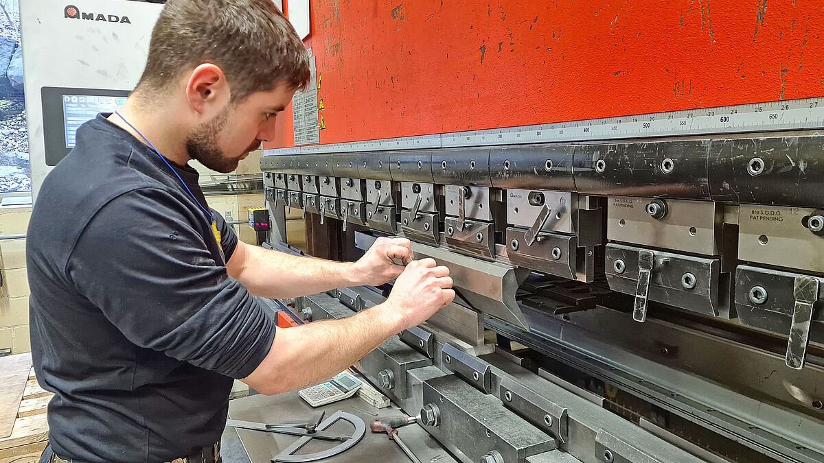 Abkanten, walzen, schleifen und schweissen – Marco Manser fasziniert, wie vielfältig die Metallverarbeitung ist. «Obwohl Metall ein kalter Werkstoff ist, kannst du es für alles einsetzen», sagt der Absolvent des Lehrgangs Metallbau-, Werkstatt- und Montageleiter*in mit eidg. Fachausweis FA. Eine Aussage aus dem Studium an der Baukaderschule St. Gallen prägt seine Arbeit bei der Grütter Metallwaren AG in Herisau besonders.