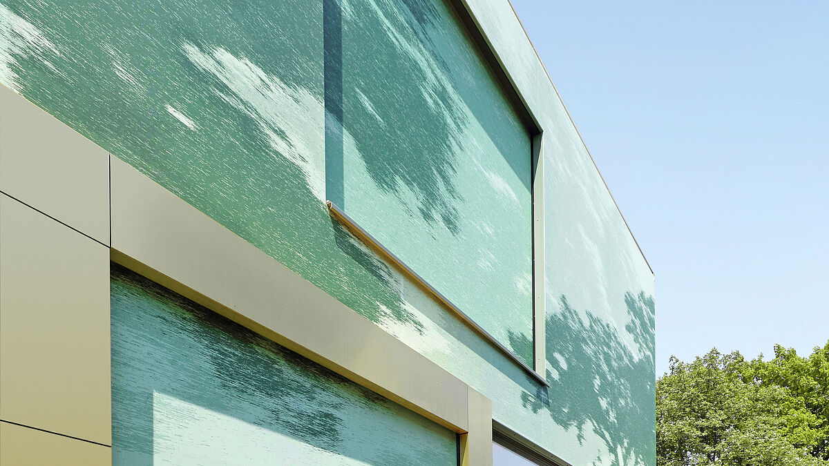 Textile Fassade in Kombination mit individuellem Sonnen- und Sichtschutz