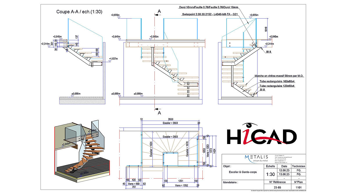 Avec les différentes macros proposées dans HiCAD, concevez très rapidement vos escaliers et garde-corps. Vous pouvez également réagir rapidement aux demandes de changements qui surviennent et modifier la forme, le modèle et le type de fixation de votre rampe ou de votre escalier. En cas de modification d’un profilé, la macro adaptera l’assemblage à la nouvelle situation.