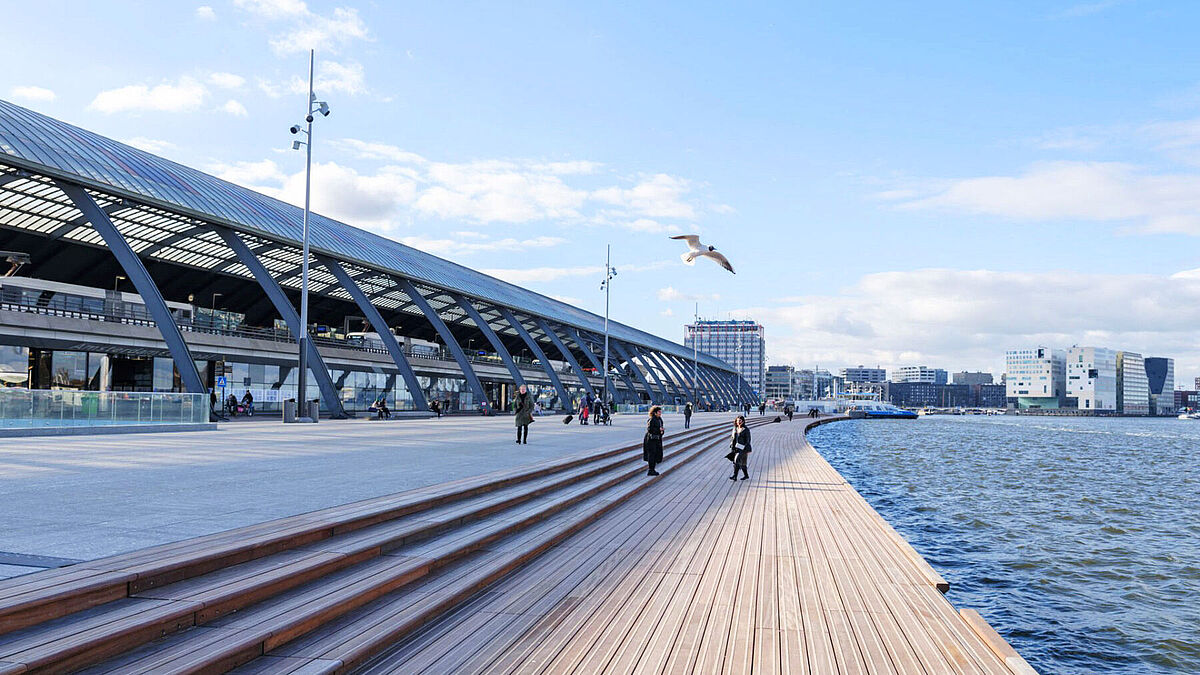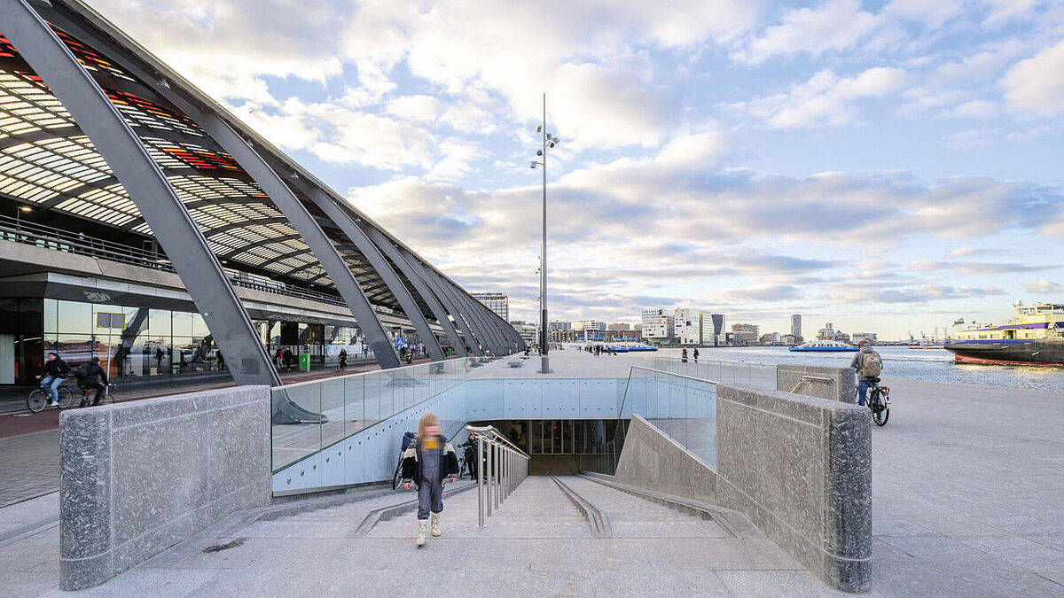 Le vélo est indissociable de la culture des Pays-Bas. Afin d’éviter un encombrement des deux-roues dans le centre d’Amsterdam, la municipalité a réaménagé la zone du carrefour Amsterdam Centraal. Le corps de bâtiment flottant « IJboulevard » de VenhoevenCS offre des possibilités de stationnement sûres aux vélos et restitue l’espace extérieur à la société.