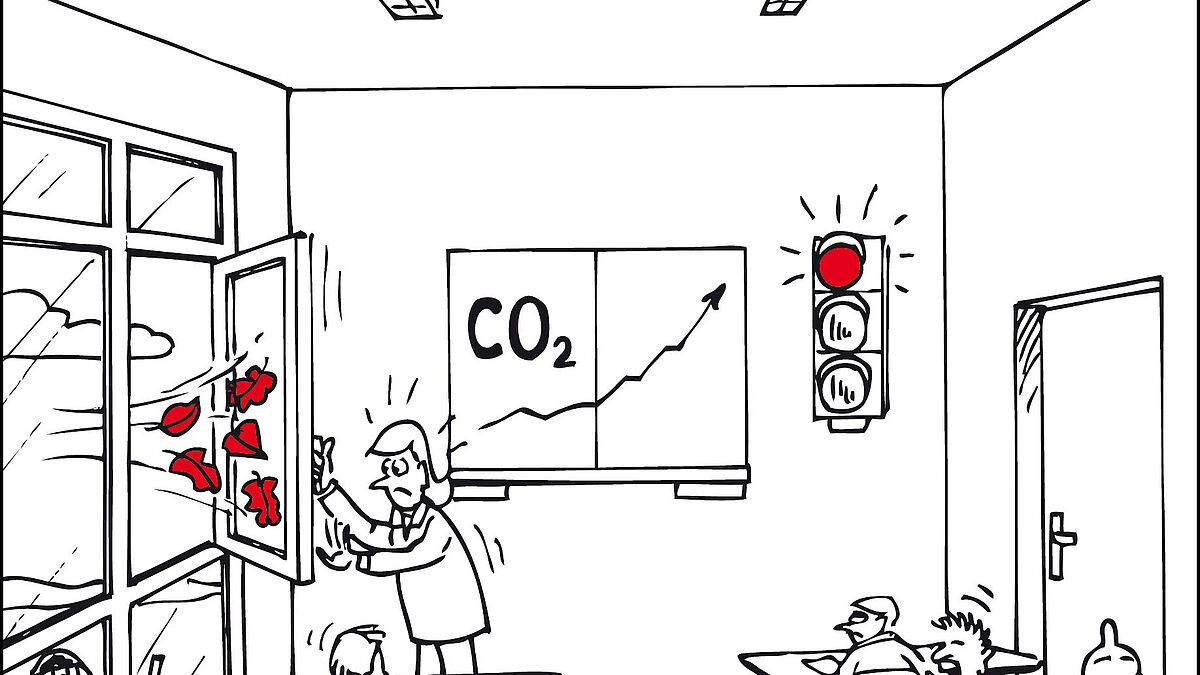 Un apport suffisant d’air frais est indispensable à la santé, au bien-être et aux performances intellectuelles. Une concentration moyenne en CO 2 de 1000 ppm (ppm = partie par million) est recommandée pour maintenir la qualité de l’air ambiant. La limitation de la teneur en CO 2 dans les espaces fermés est donc primordiale dans les salles de classe et les bureaux. Sans aération, la concentration de CO 2 atteint en une heure de cours la valeur inacceptable de 2000 ppm. La plupart des écoles allemandes ne disposant pas d’installations d’aération – d’ailleurs difficiles à ajouter pour des raisons de temps et de budget –, l’aération par les fenêtres est la manière la plus simple (et souvent la seule) d’obtenir assez d’air propre peu chargé en virus. On ne peut pas se limiter à la filtration des virus, car cela ne résout pas le problème de la concentration nocive de CO 2 .