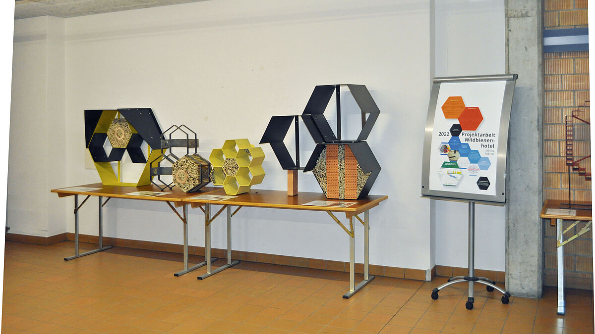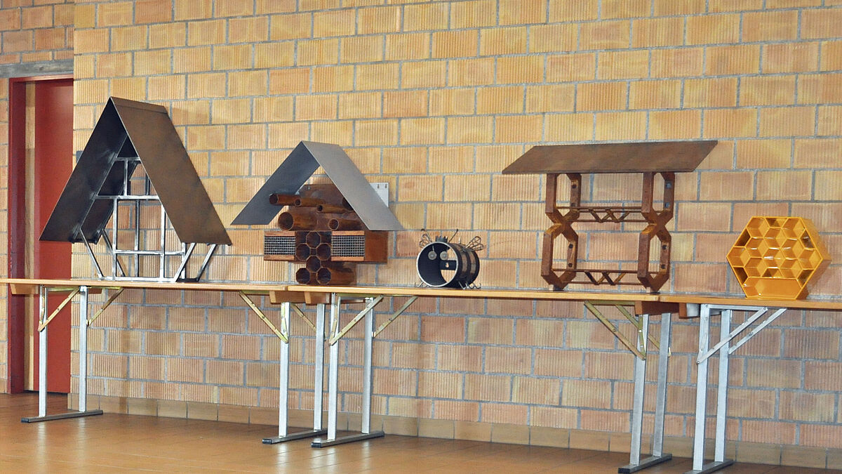 Les insectes jouent un rôle important dans l’écosystème à plusieurs égards, par exemple en tant que pollinisateurs ou dans la lutte contre certains organismes ; c’est pourquoi l’Homme se mobilise un peu partout pour créer des « hôtels à insectes ». Ceux-ci sont destinés à offrir aux petits rampants et volants un abri pour la saison froide ainsi qu’un espace pour la nidification. L’année dernière, des apprentis-constructeurs métalliques de la (BBZ) ont également participé. Dans le cadre d’un projet mené pour la deuxième fois, ils ont conçu et fabriqué des « hôtels pour abeilles sauvages » pour l’association Naturnetz Kloster Fahr.