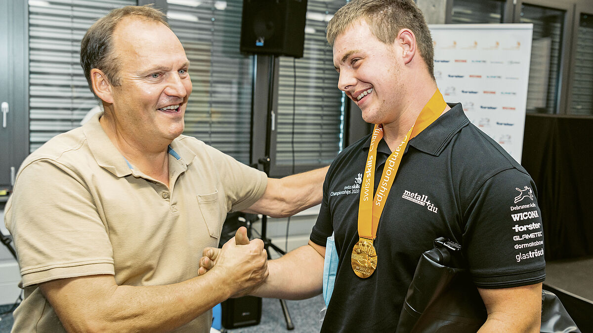 Ernst Büsser est déjà habitué à ce genre de félicitations : Lars Rotach est en effet le deuxième champion suisse issu de son entreprise. Michael Schafflützel, qui travaille toujours chez Büsser Metallbau SA, a été champion suisse en 2006 et vice-champion du monde des métiers à Tokyo en 2007. « Il est assez rare que deux champions suisses se retrouvent ensemble sur un même chantier », dit Ernst Büsser en riant. Ces titres sont pour lui et son entreprise la confirmation que la qualité est une priorité absolue au sein de l’entreprise. Les bons spécialistes sont très appréciés par les clients. Cette victoire est aussi pour Lars Rotach le symbole de ses compétences de constructeur métallique : « Pour moi, la médaille d’or signifie que je suis un bon professionnel et que je peux faire appel à la performance requise au bon moment. » Au-delà de la pratique dans l’entreprise formatrice, la théorie dans les écoles professionnelles et les cours interentreprises y ont certainement contribué. Michael Schafflützel ajoute : « La victoire assure la reconnaissance et la notoriété. J’apprécie particulièrement la force mentale que j’ai pu acquérir lors des deux concours. »