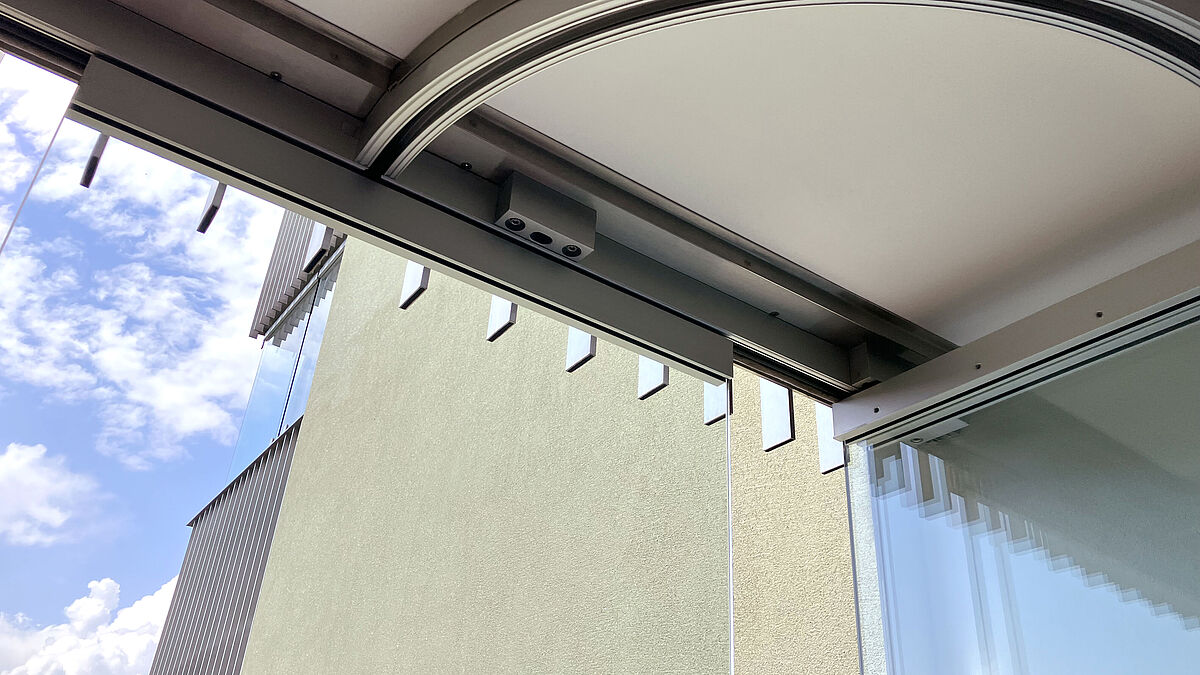 Les vitrages de balcon se composent chacun de neuf vantaux pivotants en verre intégral. Ils s’ouvrent et se ferment en quelques gestes simples selon les besoins. Afin de respecter la ventilation permanente exigée, prescrite par le physicien-conseil en construction, les vitrages sont disposés en bas, sur les côtés et en haut à une distance d’environ 60 mm par rapport au corps de bâtiment. Des distances de 20 mm entre les différents panneaux de verre sont également prises en compte. En raison des forces de vent attendues, les responsables ont opté pour une épaisseur de verre de 15 mm plutôt que de 12 mm comme d’habitude. Par conséquent, il n’a pas été possible de trouver sur le marché des systèmes de rails et des ferrures adaptés et ces composants en acier inoxydable ont dû être spécialement conçus et fabriqués. AAV Construction métallique a donc conclu une collaboration avec Aweso AG pour la fabrication de ces composants.