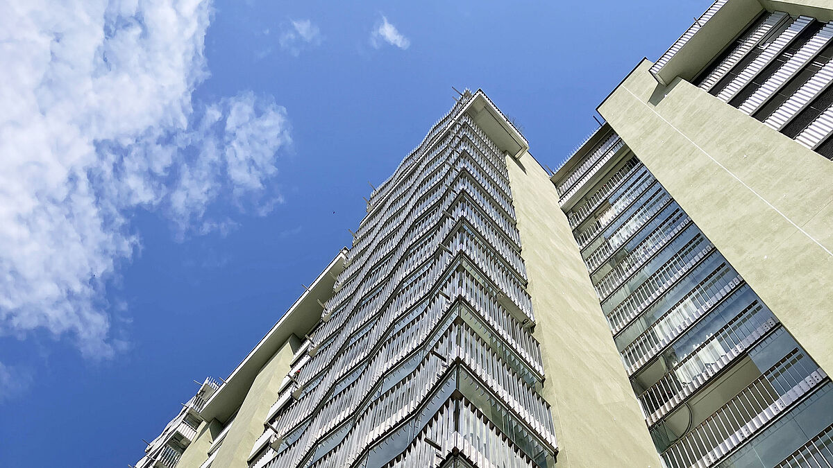 Selon l’incidence de la lumière et l’heure de la journée, les nouveaux balcons vitrés à facettes de l’immeuble d’habitation de plus de 50 m de haut génèrent différents effets visuels. Parfois sobres, parfois mats, parfois rutilants et brillant à la lumière du soleil. Mais ce qui reste perceptible, c’est que les objectifs optiques et techniques ont été atteints avec l’esprit d’innovation du bureau d’architectes NOMOS Groupement d’architectes SA, Genève.
