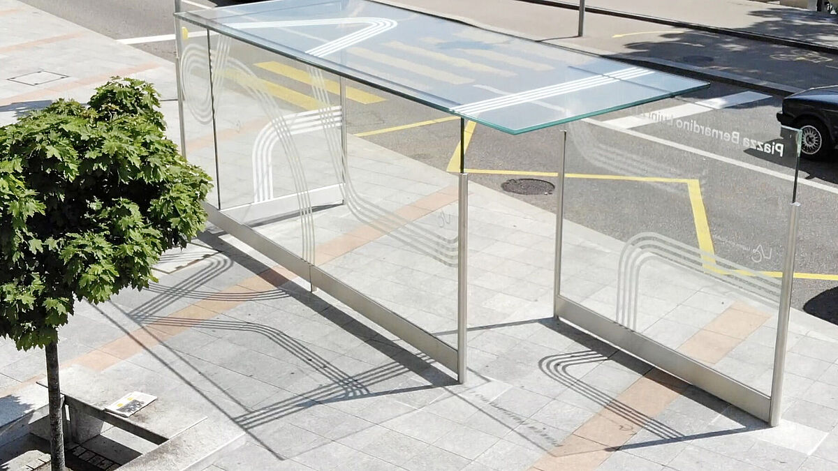 Protagonisti indiscussi in questo moderno progetto d’arredo urbano, acciaio e vetro esaltano alla perfezione le loro peculiarità. Oltre a non ostacolare la percezione sensoriale dello spazio, rendono più luminosa e armoniosa quest’area di sosta.