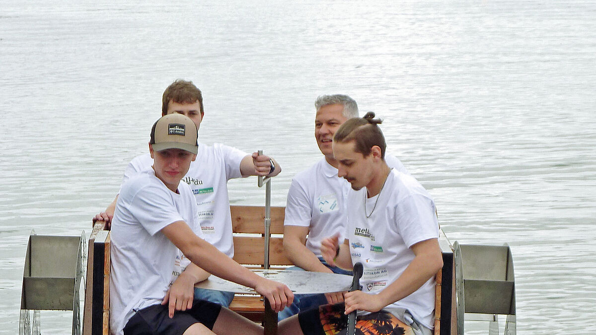 À vos marques, prêts, partez ! L’eau gicle partout autour des cinq bateaux alignés côte à côte. Les participants se livrent des combats acharnés pour les meilleures places, jusqu’à ce que les bateaux se suivent en file indienne en fonction de leur capacité d’accélération. Il s’agit maintenant de boucler un parcours exigeant de plusieurs centaines de mètres avec de nombreux changements de direction. Les constructeurs métalliques ont de la puissance : ils l’ont démontré de manière impressionnante sur leurs embarcations mues par la force musculaire. Après des changements de coureurs impressionnants à bord et des virages serrés, le groupe 3, classe B, est le premier à atteindre l’arrivée. Les vainqueurs peuvent garder leur bateau.