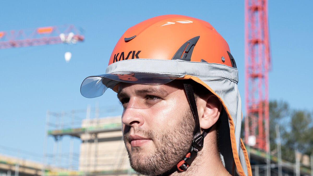 • C’est en juin et juillet que le rayonnement UV est le plus dangereux. Particulièrement exposés au risque de cancer de la peau, le nez, les oreilles, le front, la nuque, le cou et le cuir chevelu doivent être protégés par un couvre-chef ou un casque avec visière frontale et protège-nuque, même par temps partiellement couvert.
