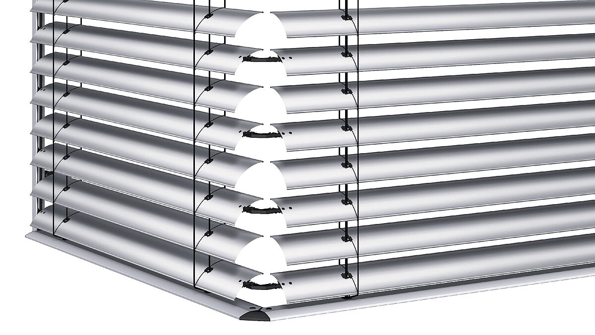 Sur les stores à lamelles pour angles de Warema, aucun rail de guidage ou câble de serrage ne vient perturber l’esthétique du coin entièrement vitré ; le spécialiste de l’ombrage propose des stores à lamelles couplés sans éléments de guidage dans l’angle. Des raccords d’angle filigranés fixés aux lamelles remplacent les guidages gênants dans les angles vitrés. Ils conviennent à presque toutes les formes de lamelles et contribuent à l’harmonie générale de la protection solaire. Les lames finales sont reliées de manière fixe et le comportement d’orientation standard des lamelles n’est pas entravé par la liaison. Les deux stores à lamelles disposés en coin s’orientent simultanément. Ils montent et descendent en parallèle.