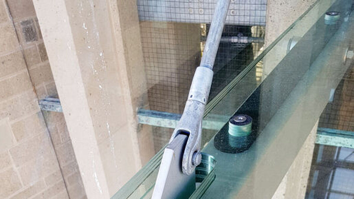 Le cadre en acier a été placé entre les anciens piliers maçonnés du clocher historique. Heureusement, ils étaient suffisamment porteurs pour absorber ces charges. En dessous, les vitres en verre verticales sont fixées au cadre de sol en acier avec des supports par points en inox. Les angles en verre sont également reliés avec des supports par points et des équerres intérieures. Le toit en verre est aussi relié avec des équerres et des supports par points adaptés aux angles verticaux. ■