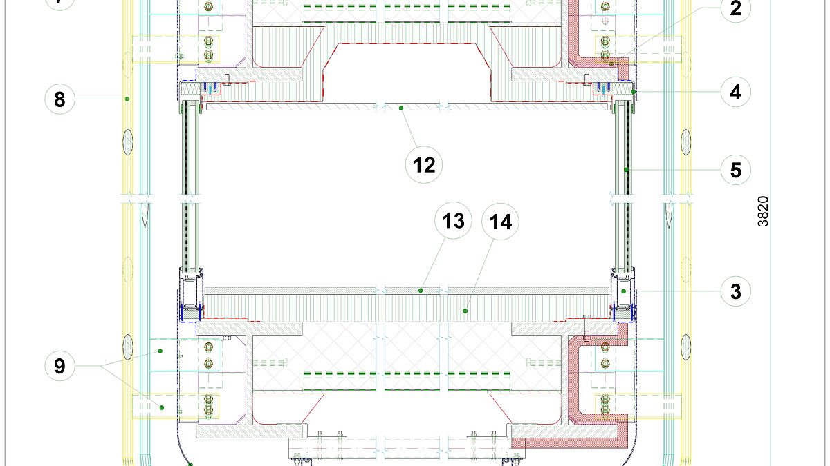 La structure porteuse de base est un pavé droit à l’horizontale, constitué de quatre poutres métalliques HEM 300 continues (deux en haut, deux en bas). De chaque côté du bâtiment, les poutres du haut sont jointes à celles du bas par des supports verticaux. Pesant au total 26 tonnes, cette nouvelle passerelle est coulissante sur un côté et fixe de l’autre.