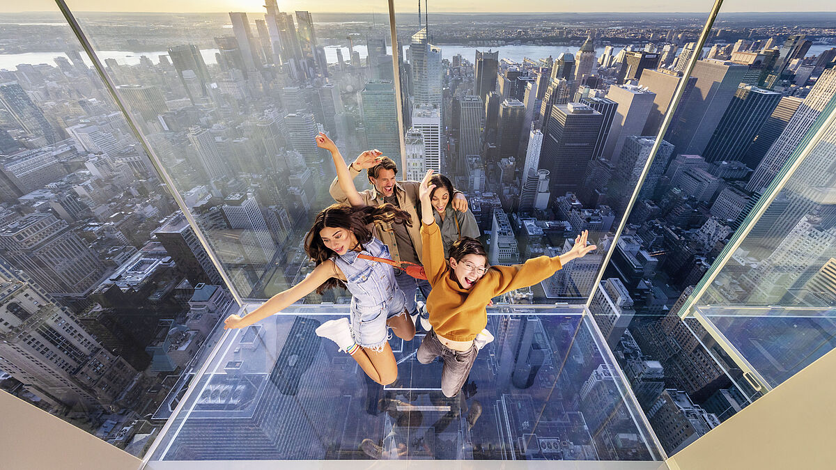 Les visiteurs accèdent aux boîtes en verre du « Summit One Vanderbilt », hautes de 5,3 m et larges de 3,7 m, par deux ascenseurs extérieurs vitrés.